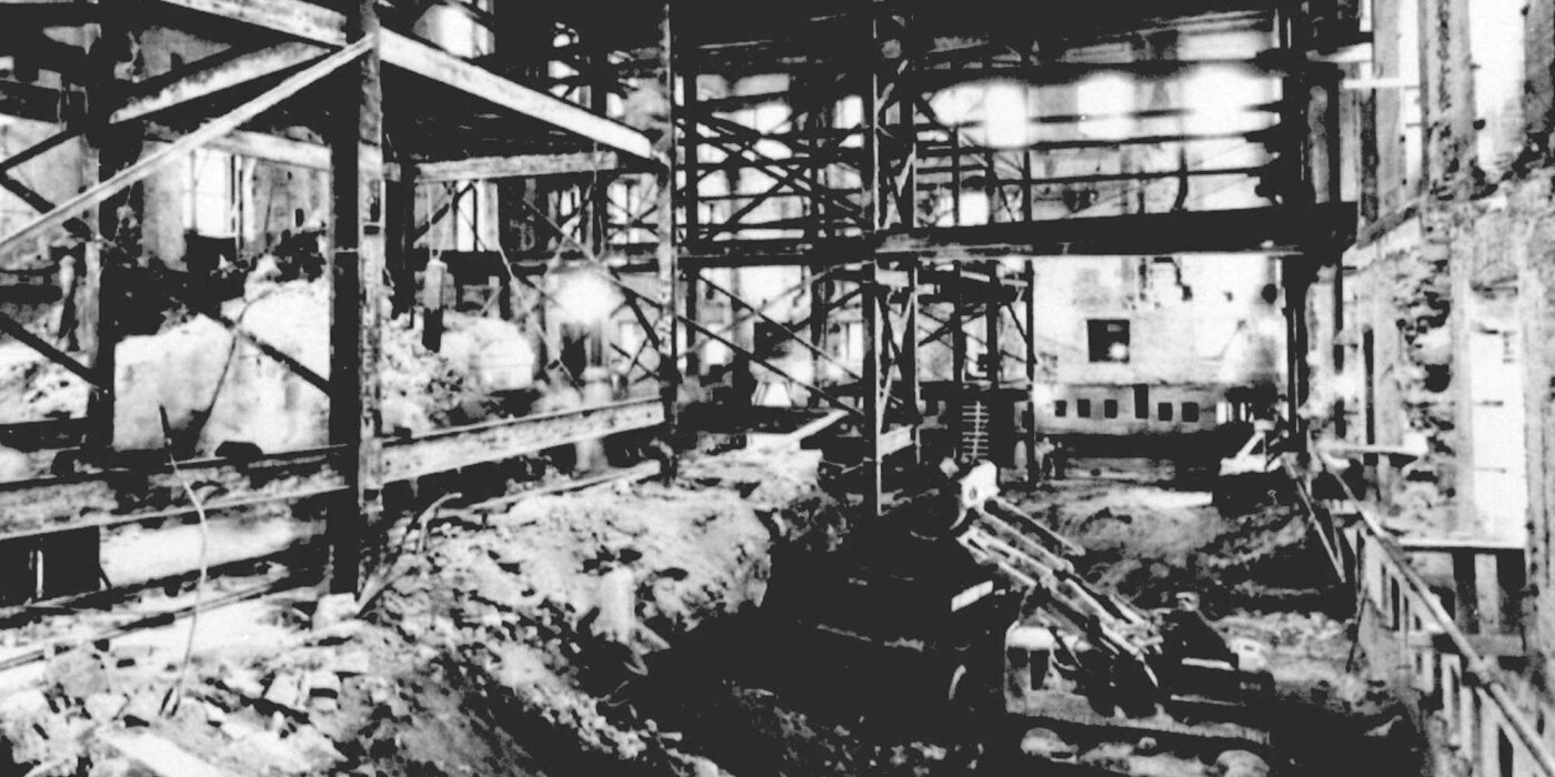 The gutted interior of the White House in 1950, during major structural renovations that forced President Truman and his family to live in a temporary residence for nearly four...